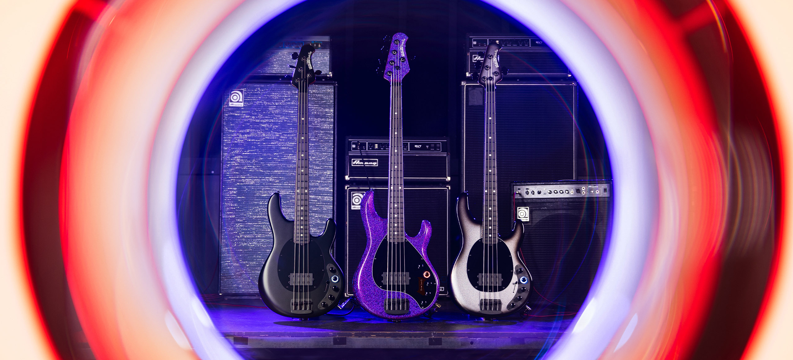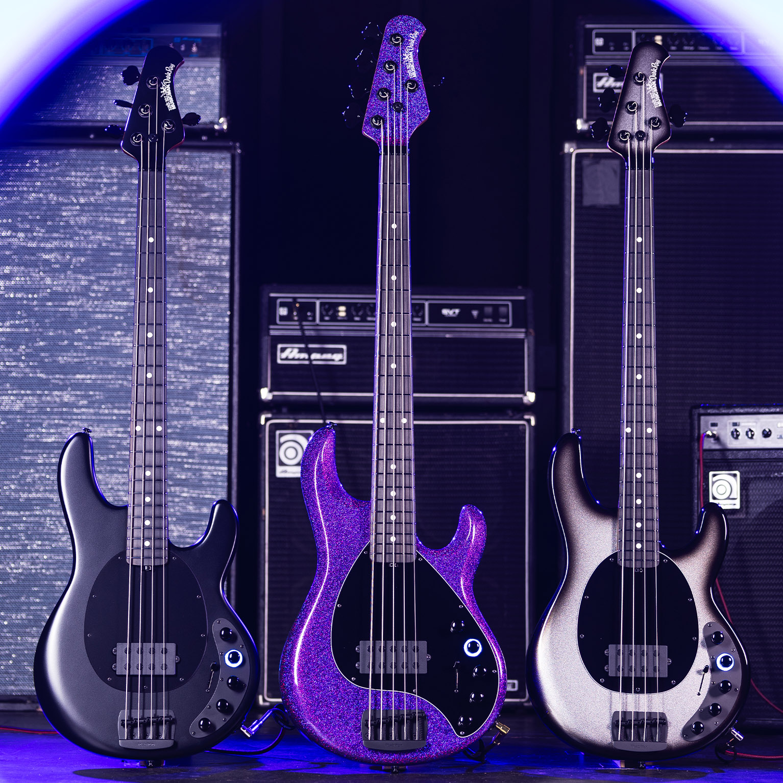 | Bridge | Vintage Music Man® top loaded Black plated, steel bridge plate with vintage Black plated steel saddles | |