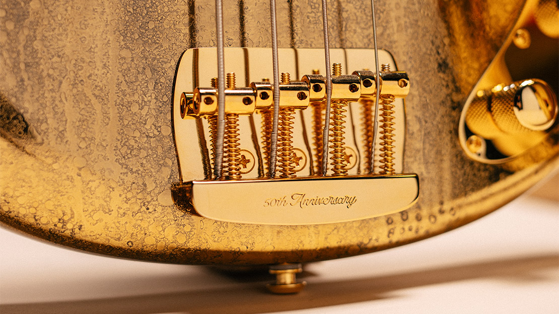 Featuring a stamped 50th Anniversary gold-plated steel plate with matching gold-plated stainless steel saddles, this top-loading bridge enhances string attack and resonance, delivering the bright, punchy tone and sustain that have defined the Music Man Stingray sound for decades.