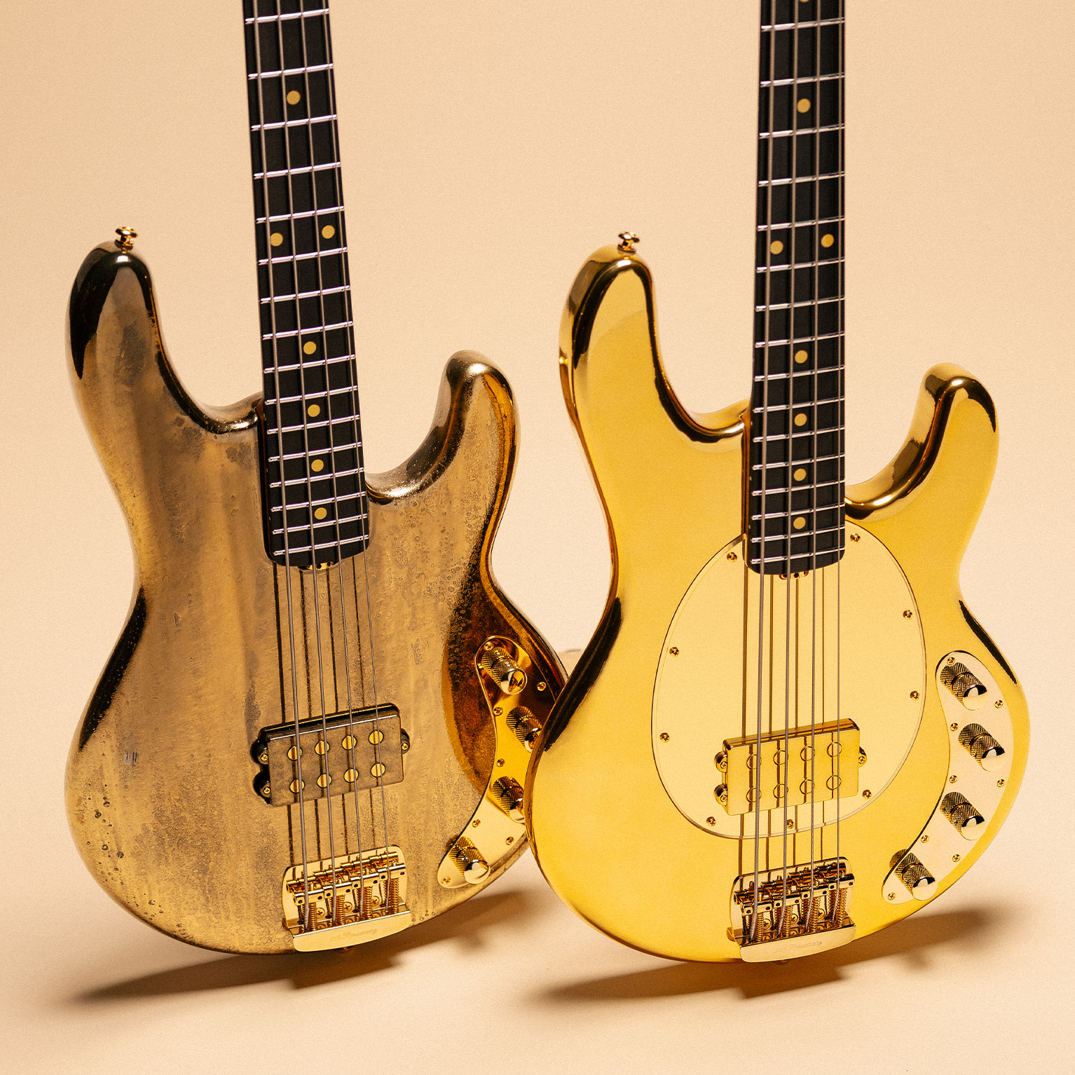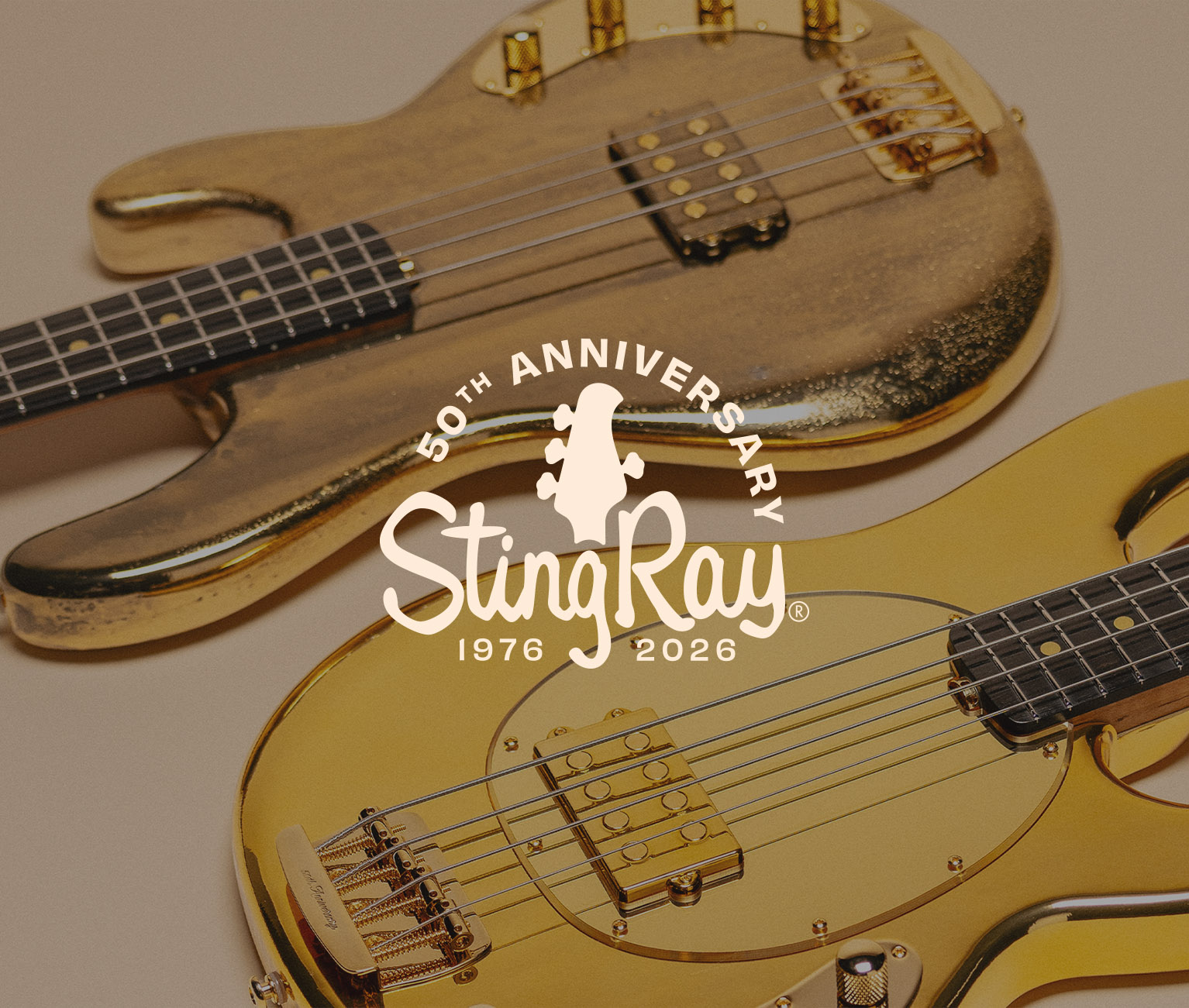 Celebrating 50 years of the iconic StingRay, these Golden Anniversary editions pay tribute to five decades of innovation, tone, and unmistakable style. Built with resonant poplar bodies, they deliver a balanced, responsive low-end growl with exceptional clarity and sustain. The roasted maple necks are paired with sleek ebony fretboards featuring elegant gold dot inlays, while glow-in-the-dark side dots provide precision and visibility on any stage. Finished in a striking high-gloss buff, these commemorative StingRays blend heritage craftsmanship with forward-looking performance—celebrating half a century of punch, clarity, and authority.